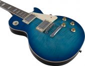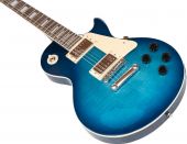 | Pickup: | 2 x humbucker | | Version: | Right hand version | | Neck: | Glued neck made of mahogany, Fingerboard: rosewood 22 frets | | Body: | 4/4 LP-form Mahogany | | Pickguard: | White | | Scale length: | 630 mm | | Nut width: | 43 mm | | Number of strings: | 6 | | Regulator: | 2 x volume, 2 x sound | | PU switch: | 1 x 3-way-switch | | Bridge: | Tune-o-matic | | Binding: | Front side and back side black, pinstripe | | Hardware: | Chromium-plated | | Color: | Blueburst, faded | | Weight: | 3.65 kg | | Body | | | Material: | Limewood |   |  |  |  | |