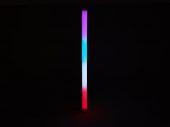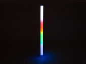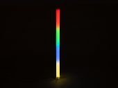 | Power supply: | 12.6V DC | | IP classification: | IP20 | | Protection class: | Protection class III | | Power connection: | Mains input via coaxial power connector (M) power supply cord with AC adapter (provided) | | Battery pack type: | 1 x lithium ion 11.1 V, 2500 mAh, 27.7 Wh | | Battery pack: | Battery operation up to 8h Recharging time 4h | | Battery: | 1 x button cell 3.0 V CR2025 lithium manganese built-in | | Lamp type: | LED lamp | | LED type: | 32 x SMD 5050 3in1 TCL RGB | | Flash rate: | 0 - 30 Hz | | Control: | On/off switch on device; IR remote control | | Beam angle: | 300° | | Beam angle (1/2 peak): | 300° multicolor | | Housing color: | White; semi-transparent | | Dimensions: | Width: 20 cm Height: 100 cm Diameter: Ø 5 cm | | Weight: | 0.56 kg | | Noise classification: | Class 0 (no noise at all) |