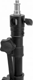 | Maximum carrying capacity: | Centric 14 kg; asymmetric 10 kg | | Height: | Maximum: 250 cm Minimum: 114 cm | | Attachment system: | TV spigot mini Ø 16 mm | | Type (general stands): | Light stand/manual | | Material: | Steel; aluminum | | Color: | Black | | Transport dimensions: | 116 cm x 11 cm x 9 cm | | Weight: | 3,00 kg | | Adapter | | | Attachment system: | 3/8 inch thread 1/4 inch thread |  |  |  |  | |