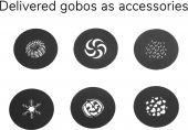 Gobo wheel with rotating gobos, 8 gobos Outside diameter 23.80mm Image diameter 14mm Gobos changeable Slot-in gobo system for easy gobo replacement