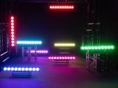 Weather-proof blinder bar with pixel control and colored atmospheric light in the reflector