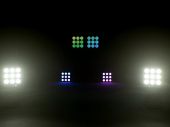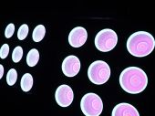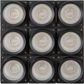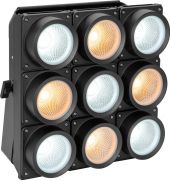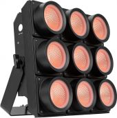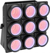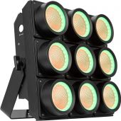 Each of the 9 COB blinder LEDs is surrounded by 2 RGB segments for atmospheric light