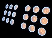 360 x 0.2 W SMD 3528 3in1 TCL RGB (homogenous color mix) 9 x 24 W COB (chip-on-board) CW/WW (homogenous color mix)