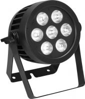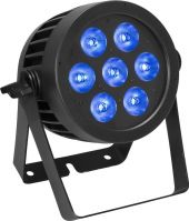 | Power supply: | 100-240 V AC, 50/60 Hz | | Power consumption: | 55 W | | IP classification: | IP65 | | Power connection: | Mains input via IP T-Con (M) mounting version power supply cord with safety plug | | Power output: | IP T-Con (F) mounting version | | Lamp type: | LED lamp | | LED type: | 7 x 9 W high-power 7in1 SCL RGB/CW/WW/A/UV (homogenous color mix) | | Flash rate: | 0 - 20 Hz | | DMX channels: | 3; 5; 7; 9; 13 | | DMX input: | 1 x 3-pin XLR (M) mounting version IP | | DMX output: | 1 x 3-pin XLR (F) mounting version IP | | Cooling: | Passive convection cooling | | Control: | DMX; stand-alone; IR remote control | | Preprogrammed in: | LED PC-Control 512; EASY SHOW 1; Light Captain; EASY SHOW 2; EASY SHOW 3 | | Projection: | Flicker-free | | Beam angle: | 15° | | Beam angle (1/2 peak): | 15° | | Housing color: | Black matte | | Attachment system: | Double bracket | | Display type: | LCD display | | Material: | Aluminum casting | | Dimensions: | Width: 25.5 cm Depth: 15.3 cm Height: 28.1 cm | | Weight: | 4.07 kg | | Noise classification: | Class 0 (no noise at all) | | Photobiological safety: | Risk Group 0 | | Mounting bracket | | | Diameter mounting holes: | 3 x Ø11mm | | Material: | Metal, 2.5 mm | | Power cord | | | Cable construction: | 3 x 1.0 mm² H05RN-F | | Cable length: | Approx. 1.2 m | | Remote control | | | Battery: | 1 x button cell 3.0 V CR2025 lithium manganese built-in | | Legal specifications | | | Special product: | Not designed for household room illumination | | Intended use: | Show effect lighting |