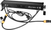 | Power supply: | 100-240 V AC, 50/60 Hz | | Power consumption: | 40 W | | IP classification: | IP65 | | Power connection: | Mains input via IP T-Con (M) power supply cord with safety plug | | Power output: | IP T-Con (F) | | Lamp type: | LED lamp | | LED type: | 8 x 8 W high-power 4in1 QCL RGBW (homogenous color mix) | | Flash rate: | 0 - 20 Hz | | DMX channels: | 3; 4; 5; 6; 9 | | DMX input: | 3-pin XLR (M) IP | | DMX output: | 3-pin XLR (F) IP | | Cooling: | Passive convection cooling | | Control: | DMX; master/slave function; stand-alone; IR remote control | | Preprogrammed in: | Light´J; Light Captain; EASY SHOW 1; EASY SHOW 2; EASY SHOW 3; Colorchief | | Projection: | Flicker-free | | Beam angle: | 20° | | Beam angle (1/2 peak): | 20° | | Beam angle (1/10 peak): | 35 | | Housing color: | Black | | Attachment system: | 2x mounting bracket | | Display type: | 4 digit 7-segment LED display | | Material: | Plastic hard | | Dimensions: | Length: 58.40 cm Depth: 10.00 cm Height: 12.65 cm | | Weight: | 3.68 kg | | Noise classification: | Class 0 (no noise at all) | | Photobiological safety: | Risk Group 0 | | Power cord | | | Cable construction: | 3 x 1.0 mm² H05RN-F | | Cable length: | Approx. 1.2 m | | Remote control | | | Battery: | 1 x button cell 3.0 V CR2025 lithium manganese built-in | | Mounting bracket | | | Diameter mounting holes: | 1 x Ø11mm; 3 x Ø8mm | | Material: | Plastic hard, 4 mm | | Legal specifications | | | Special product: | Not designed for household room illumination | | Intended use: | Show effect lighting |
