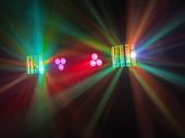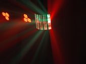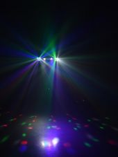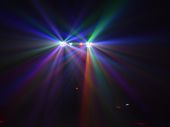 DMX lighting effect bar with 2 rotating LED derbies and 2 LED spotlights