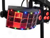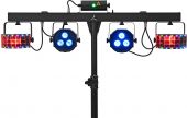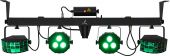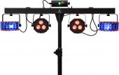 Bar with 2 spots, 2 derbies, show laser, twinkle effect, AirW wireless system (2.4 GHz) and RF remote control
