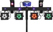 Compact bar with derby, spots, scanners, UV effect, QuickDMX port and bag
