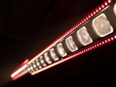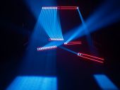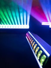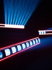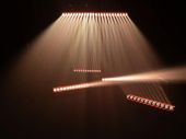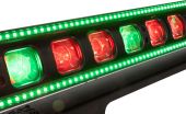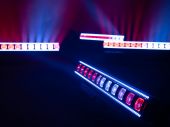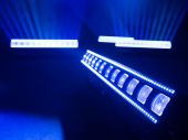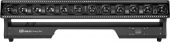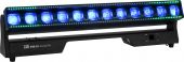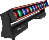 Motorized tiltable LED light effect bar with 12 high-performance LEDs, two zoom ranges from 2° to 28° and 164 effect LEDs