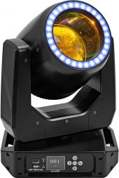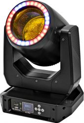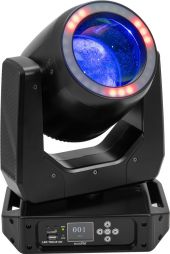 LED moving head beam with hypno ring, color wheel, static gobo wheel, prism and focus