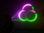Gobo wheel with rotating gobos, 7 gobos and open Outside diameter 23.9mm Image diameter 18mm Shake effect Gobos changeable Slot-in gobo system for easy gobo replacement