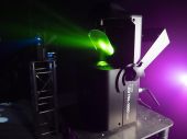 Scanner with 100 W LED, rotating gobos, 3-facet prism, color wheel and motorized focus