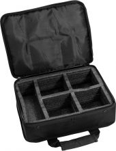 |  | Nylon transport bag | Carrying strap: | 2 pc/pcs | | Material: | Nylon, water repellent | | Color: | Black | | Device compartment: | 11 cm x 11 cm x 8 cm | | Dimensions: | Length: 35.5 cm Depth: 29 cm Height: 10 cm | | Weight: | 0.39 kg |  |  |  |  | |