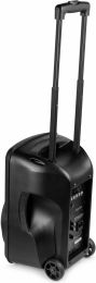 | Product colour | Black | | Playback options | BT streaming, USB, SD, Line input, Microphone (input) | | Speaker type | Active (amplified) | | Output power: Max | 450W | | Battery | 3.7V - 3Ah | | Frequency response | 50Hz - 19.000Hz | | Diameter tweeter | 1" | | Tweeter type | Piezo | | Diameter woofer | 10" | | Magnet type | Ferrite | | Input connections | 3.5mm Jack, 6.3mm Jack, SD, USB | | Frequency handheld microphone(s) | 863.200 MHz | | Supplied features | Speaker pole mount | | IP rating | IP20 | | Power supply | 100-240VAC 50/60Hz | | Dimensions (L x W x H) | 280 x 245 x 445mm | | Weight (kg) | 4,26 | | Included accessories | Handheld microphone (wireless), Remote control (wireless), Power cable | pdf