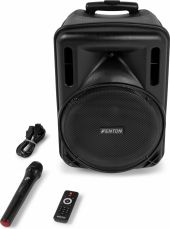 | Product colour | Black | | Playback options | BT streaming, USB, SD, Line input, Microphone (input) | | Speaker type | Active (amplified) | | Output power: Max | 700W | | Battery | 11.1V - 3.6Ah | | Frequency response | 50Hz - 19.000Hz | | Diameter tweeter | 1" | | Tweeter type | Piezo | | Diameter woofer | 12" | | Magnet type | Ferrite | | Input connections | 3.5mm Jack, 6.3mm Jack, RCA, SD, USB | | Frequency handheld microphone(s) | 863.200 MHz | | Supplied features | Speaker pole mount | | IP rating | IP20 | | Power supply | 100-240VAC 50/60Hz | | Dimensions (L x W x H) | 290 x 330 x 520mm | | Weight (kg) | 6,64 | | Included accessories | Handheld microphone (wireless), Remote control (wireless), Power cable | pdf