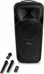 Komplet 1400W aktiv højttaler med BT-forbindelse. Højttaleren er ideel til mindre publikum og fester, skoler eller præsentationer. Med BT trådløs teknologi kan brugeren nemt tilslutte sin enhed og streame musik direkte gennem den 1400-watt højttaler. Højttaleren leveres med 2 trådløse mikrofoner med volumen- og ekkokontrol samt en AUX-indgang til tilslutning af CD-afspiller eller bærbar computer for maksimal fleksibilitet.