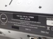 | Power supply: | 230 V AC, 50 Hz | | Power consumption: | 1600 W | | IP classification: | IP20 | | Protection class: | Protection class I | | Power connection: | Via PowerCON TRUE (M) mounting version | | Warm-up time: | Approx. 12 min | | Output distance: | Approx. 15 m | | Output duration: | 20s - 50s - continuous | | Tank capacity: | 5 l removable tank | | Fluid consumption: | Approx. 35 ml/min - 200 ml/min | | DMX input: | 1 x 5-pin XLR (M) mounting version | | Control: | Wireless remote control (optional); wired remote control (optional); stand-alone; timer; DMX; RDM | | Operating principle: | Vaporizing fog machine | | Display type: | OLED display | | Color: | Black | | Dimensions: | Width: 21.1 cm Depth: 48 cm Height: 38.8 cm | | Weight: | 14.65 kg | | Noise classification: | Class 2 (slight noise) |     |  |  |  | |