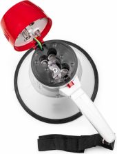 | Product colour | Grey, Red | | Audible range | 600m | | Batteries | 6V (4x AA) | | Output power: Max | 18W | | Dimensions (L x W x H) | 220 x 140 x 205mm | | Weight (kg) | 0,40 | pdf
