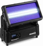 |  | The Nuke3 Motorized Strobe/Wash is a dynamic lighting powerhouse designed for versatility and impact. With a motorized 180° tilt range, this hybrid fixture switches seamlessly between a powerful strobe and a colourful wash, or a captivating combination of both effects. Featuring 96x 10W Cool White LEDs and 864x 0.5W RGB SMD LEDs, the Nuke3 provides a brilliant palette of colours and intense white light. Pixel-mappable zones, electronic frost filter, DMX control, and automated programs make creating stunning lighting effects a breeze. Its IP65 waterproof rating ensures reliable outdoor performance, making the Nuke3 an ideal choice for both indoor and outdoor events. - Hybrid twin strobe/wash with motorized 180° tilt range