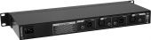 | Power supply: | 100-240 V AC, 50/60 Hz | | Power consumption: | 12 W | | Protection class: | Protection class I | | Isolators: | Master Gain:- ∞ bis +9 Low/mid 300 Hz, 18db/oct , Butterworth Mid/high 4000 Hz, 18db/oct , Butterworth | | Connections: | Input: line via 2 x 3-pin XLR Input: line via 2 x RCA (F) mounting version Output: line via 2 x 3-pin XLR Output: line via 2 x RCA (F) mounting version | | Max. level: | Input: +22 dBu | | Housing design: | (19") 48.3 cm rack installation 1 U | | Dimensions: | Width: 48.3 cm Depth: 14.5 cm Height: 4.45 cm | | Weight: | 2.04 kg |
