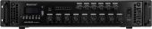 | Power supply: | 230 V AC, 50 Hz | | Power consumption: | 240 W | | Output power: | 120 W RMS | | Power connection: | Fixed power supply cord with safety plug | | Frequency range: | 50 - 18000 Hz | | S/N ratio: | >75 dB Microphone >85 dB line | | THD: | <0,5 % at 1 kHz | | Cooling: | Cooling fan | | Impedance: | Public address systems 100V; 4-16 ohms; Public address systems 70V | | Control: | IR remote control; Bluetooth | | Audio player: | USB + SD + Bluetooth, | | Zone output: | 6 adjustable zones | | Circuitry: | Class AB | | Display type: | LCD display | | Controls: | Current limiting; short-circuit; power on/off transient; power on/off transient; Overvoltage; short-circuit | | Status LED: | Power, fault, level meter | | Connections: | Input: Microphone via 1 x 3-pin XLR Input: Microphone via 2 x 6.3 mm plug (unbal.) Input: line via 2 x stereo RCA 0,3 V Output: line via 1 x stereo RCA Output: speaker via screw terminal | | Equalizer: | Master: 1 x 2-band tone control mono | | Music format: | MP3 | | Number of files: | Max. 999 | | Available storage media: | USB devices/SD cards max. 32GB (FAT 32) | | Housing design: | (19") 48.3 cm rack installation 2 U | | Dimensions: | Width: 48,3 cm Depth: 32 cm Height: 9,2 cm | | Weight: | 5,70 kg | | Remote control | | Battery: | 1 x Button cell 3.0 V CR2025 lithium manganese built-in |     |  |  |  | |