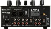 | Power supply: | 100-240 V AC, 50/60 Hz | | Power consumption: | Max. 8 W | | Protection class: | Protection class II | | Power connection: | Mains input via C8 (M) "figure 8" mounting version power supply cord with Euro plug (provided) | | Frequency range: | 20 - 20000 Hz | | S/N ratio: | >80 dB | | THD: | <0.1 % at 1 kHz | | DJ filter: | Per channal: LPF/HPF bipolar, | | DJ-FX: | Master: CHORUS, REVERB, DELAY, FLANGER Master: WHA, PHASE, | | Control: | Bluetooth | | Bluetooth device name: | PM-202FX | | Range: | Bluetooth: range up to 15m | | Crosstalk: | >60 dB | | Control elements: | Crossfader, Crossfade curve control, crossfade reverse switch, FX Parameter control, power switch | | Status LED: | Power, master level meter | | Connections: | Input: line/phono via 2 x stereo RCA Input: line via 2 x stereo RCA Input: microphone via 1 x 3-pin XLR (F) mounting version Input: antenna via 1 x SMA (F) mounting version Input: Earthing connection via 2 x screw terminal Output: master via 2 x 3-pin XLR (M) mounting version Output: master via 1 x stereo RCA Output: rec. via 1 x stereo RCA Output: headphones via 1 x 6.3 mm jack socket (stereo) mounting version Output: headphones via 1 x 3.5 mm jack (stereo) mounting version | | Channels: | Input chanel: 2 x stereo with Line-Line/Phono-Bluetooth switch via RCA, channel control via 60mm fader, 2-band tone control EQ, gain control, CUE switch Microphon chanal: 1 x mono via XLR, channel control via rotary dial, 2-band tone control EQ Master output: 1 x stereo via XLR or RCA, channel control via rotary dial, balancecontrol Headphones output: stereo via jack, channel control via rotary dial, cue mix function Rec. output: stereo via RCA | | Material: | Metal | | Color: | Black | | Housing design: | Desktop console housing | | Dimensions: | Length: 30.5 cm Width: 19.0 cm Height: 11.0 cm | | Weight: | 2.18 kg | | Power cord | | | Cable length: | 2.10 m detachable |