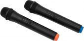 - 2 x microphone, 2 x user manual, 1 x power cord, 1 x battery, 1 x compact cabinet speaker, 1 x declaration of conformity, 1 x battery pack, 1 x remote control, 2 x antenna