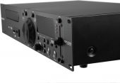 | Power supply: | 100-240 V AC, 50/60 Hz | | Power consumption: | Max. 8 W | | Protection class: | Protection class II | | Power connection: | Mains input via C8 (M) "figure 8" mounting version power supply cord with Euro plug (provided) | | Frequency range: | 20 - 20000 Hz | | Control: | IR remote control | | Audio player: | USB + SD + CD player, pitch, Anti-shock, Seamless loop | | CD player drive: | Drawer-single CD drive | | Display type: | VFD display | | Display: | CD-DA play time elapsed , play time remaining , total play time remaining , bargraph; MP3 play time remaining , play time elapsed , bargraph , ID3-Tags | | Control elements: | Source selector | | Status LED: | Power, chanal source | | Connections: | Output: line via stereo RCA 1.75 V | | Music format: | CD, CD-R, CD-RW, CD-DA, MP3 | | Available storage media: | USB devices/SD cards max. 64GB | | Pitch range: | ±4%, ±8%, ±16% | | Material: | Metal | | Color: | Black | | Housing design: | (19") 48.3 cm rack installation 2 U | | Dimensions: | Width: 48.2 cm Depth: 27 cm Height: 9.8 cm | | Weight: | 3.50 kg | | Remote control | | | Power supply: | 3V DC | | Battery: | 2 x Micro (AAA) (not included) |