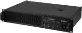 | Power supply: | 230 V AC, 50 Hz | | Power consumption: | 1380 W 1/8 power | | Protection class: | Protection class I | | Output power: | 4 x 1800 W RMS (2 ohms) 4 x 1200 W RMS (4 ohms) 4 x 800 W RMS (8 ohms) 2 x 2500 W RMS bridged (4 ohms) 2 x 2400 W RMS bridged (8 ohms) | | Power connection: | Mains input via IEC connector (M) mounting version power supply cord with safety plug (provided) | | Frequency range: | 20 - 20000 Hz | | S/N ratio: | >102 dB | | THD: | <0,1 % at 1 kHz | | Cooling: | 2 x cooling fan , air flow from front to rear | | Impedance: | Input: 20 kOhm , bal. Input: 10 kOhm , unbal. | | Gain: | 40 dB/ 0,775 V 38 dB/ 1 V 32 dB/ 2 V | | Housing color: | Black | | Circuitry: | Class D | | Slew rate: | >30 V/µs | | Damping factor: | >500 | | Control elements: | Power switch, level control per channel, mode switch (stereo/parallel/bridged), Input sensitivity switch | | Controls: | Overheat; overload; short-circuit; softstart; DC voltage; VHF; current limiting; limiter | | Status LED: | Power, signal, clip, protect | | Connections: | Input: line via 4 x 3-pin XLR (F) mounting version Link: line via 4 x 3-pin XLR (M) mounting version Output: speaker via 4 x speaker built-in socket (F) | | Input sensitivity: | 0,775 V; 1 V; 2 V , switchable | | Housing design: | (19") 48.3 cm rack installation 2 U | | Dimensions: | Width: 48,3 cm Depth: 33,0 cm Height: 8,8 cm | | Weight: | 14,20 kg |     |  |  |  | |