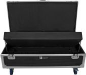 |  | Trunk case with castors | Power supply: | 100-240 V AC, 50/60 Hz | | Power connection: | Mains input via IP T-Con (M) power supply cord with safety plug (provided) | | Cable length: | 1,2 m | | Fuse: | 5 x 20 mm, 5 A fuse replaceable | | Aluminum profile frames: | 35 mm | | Case handle: | 4 pc/pcs | | Edge mounting handle: | 1 pc/pcs | | Stop hinge: | 3 pc/pcs | | Lock: | Butterfly lock: 2 pc/pcs | | Transport aid: | 4 x castors with 2 locking brakes 4 x built-in stacking trays in the cover | | Color: | Black, laminated | | Device compartment: | 7 cm x 109 cm x 10 cm | | Accessory compartment: | 113 cm x 9 cm x 21 cm | | Material thickness: | 9 mm | | Dimensions: | Width: 119 cm Depth: 63 cm Height: 45 cm | | Weight: | 34,80 kg |