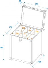 | Aluminum profile frames: | 22 mm | | Carrying handle: | 1 pc/pcs | | Stop hinge: | 2 pc/pcs | | Lock: | Spring lock: 1 pc/pcs with shut-off function | | Material: | Plywood multi-layer glued, 6.5 mm | | Color: | Black | | Compartment dimensions: | 7 cm x 7 cm x 23 cm | | Inside dimensions: | 23 cm x 15 cm x 23 cm | | Dimensions: | Length: 26 cm Width: 18.5 cm Depth: 32 cm | | Weight: | 3.10 kg |