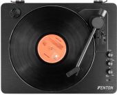 |  | The Fenton RP162 record player is a versatile vintage turntable with BT streaming and USB function. You can convert vinyl to digital file by yourself through direct USB recording. Connects wirelessly to speakers, headphones and other devices equipped with BT wireless technology or to wired audio systems and powered speakers. With the built-in BT receiver, digital music can also be streamed wirelessly from a smartphone, tablet PC or other BT compatible device and can be listened to via the stereo speakers. This high quality record player has a solid hand-made wooden housing and is equipped with a removable transparent dust cover. - High quality record player with ceramic cartridge