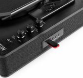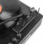 | Product colour | Black | | Playback options | BT streaming, Vinyl, USB, Line input | | Input connections | 3.5mm Jack | | Output connections | 3.5mm Jack, RCA, USB | | Speed settings (RPM) | 33, 45, 78 | | Power supply | 100-240VAC 50/60Hz (5V Adapter) | | Dimensions (L x W x H) | 410 x 320 x 145mm | | Weight (kg) | 4,10 | | Included accessories | Power adapter |