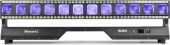 | Product colour | Black | | Colours | Red, Green, Blue, Amber, White, Cool White | | LED power (single LED) | 40W | | Quantity of LEDs | 12 | | Beam angle: Min | 5° | | Beam angle: Max | 45° | | Field angle: min | 10° | | Field angle: max | 55° | | Zoom | Yes | | Illuminance | 20.949 lx @ 1m | | Head movement: Tilt | 180° | | Flash rate per second | 1 - 20Hz | | Modes | Automatic programs, DMX, Master/Slave | | Sound to light mode | Yes | | RDM | Yes | | DMX channels | 26, 38, 62, 74, 194 | | DMX connection | 3-pin XLR | | Display | LCD | | IP rating | IP20 | | Cooling | Temperature controlled fan | | Power plug | P-Con | | Power consumption | 4.080 - 1.916A | | Power supply | 100-240VAC 50/60Hz | | Dimensions (L x W x H) | 1000 x 190 x 305mm | | Weight (kg) | 14,65 | | Included accessories | Mounting bracket, Power cable | pdf