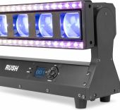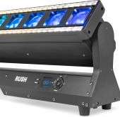 |  | The beamZ Rush Moving Bar 12x40W is a high-performance lighting fixture engineered for powerful, precise, and room-filling dynamic shows. Featuring 12 individually controllable 40W RGBW LED heads and a powerful backlight system with 96x RGB, 96x White, and 96x Amber SMD LEDs, it delivers breathtaking beam and wash effects with pixel-perfect accuracy. Designed for maximum flexibility, the Rush offers a motorized zoom from 5° to 45°, producing anything from razor-sharp, piercing beams to wide, immersive washes. Whether you’re programming sweeping motion sequences, rapid beam chases, or vibrant colour transitions, this fixture guarantees breathtaking results on any stage. - Moving Bar with tilt and backlight system
