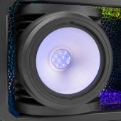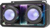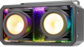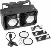 |  | The IP65 rated SB250IPFC Stage Blinder is a powerful RGBAL LED lighting fixture with a rugged aluminium design featuring Chip-on-Board (COB) LEDs that combines two effects in its housing. In addition to a standard stage blinder, this fixture can also be used as an authentic blinder effect with a vibrant RGB background. By mixing red, green and blue, any colour can be produced, while the inclusion of amber and lime allows either pure white to be produced or the enhancement of any other colour. High frequency LED dimming produces smooth fades and ensures flicker free operation when under a camera. The SB250IPFC matches the blinding light output of a conventional Audience Blinder and can be controlled in standalone mode or directly via DMX. The LEDs feature up to a 60.000 hour life expectancy. - 2x 100W RGBAL COB LEDs