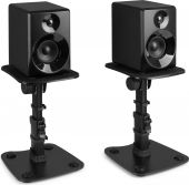 |  | The SMS3 series desktop monitor stands are made of steel and are all height adjustable, allowing monitor speakers to be placed between 23cm and 29.5cm above the height of the desk or table. The stands are equipped with ergonomic buttons and soft rubber feet that prevent resonance. The top platform provides enough surface area to support monitor speakers up to 8 inches and for extra stability, the SMS3 series stands are equipped with non-slip pads and can support up to 15 kg. - 2-pack of desktop studio monitor speaker stands