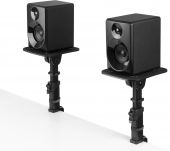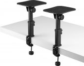 |  | Made of steel, the SMS3 series desktop monitor stands are height-adjustable, allowing you to place your monitor speakers between 23cm and 29.5cm above the height of your desk. The stands are equipped with ergonomic rotary knobs and the clamp will work on desk surfaces up to 65mm thick. The top platform is providing sufficient surface area to support monitor speakers up to 8". For additional stability, the SMS3 series desktop monitor stands include anti slip pads and can support up to 15kg. - 2-pack of desktop studio monitor speaker stands