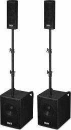 |  | The VX1020BT is a complete plug & play speaker kit. Everything needed to get started is supplied on delivery. All the power comes from the single 10" subwoofer that houses the amplifier, both tops and the passive subwoofer are connected to the amplifier unit. The built-in BT receiver allows you to simply stream your music wirelessly from your smartphone or you can use the built-in MP3 player with USB and SD slots. - Complete 1050W Plug & Play speaker kit