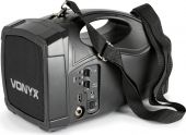 | Product colour | Black | | Playback options | BT streaming, USB | | Speaker type | Active (amplified) | | Output power: Max | 100W | | Output power | 30W | | Battery | 12V - 1.2Ah | | Frequency response | 60 - 15.000 Hz | | THD | <0.1% | | Diameter woofer | 6.5" | | Input connections | 3.5mm Jack, 6.3mm Jack | | Frequency headset (bodypack) | 863.100 MHz | | Power supply | 220-240VAC 50Hz | | Dimensions (L x W x H) | 285 x 160 x 175mm | | Weight (kg) | 3,00 | | Included accessories | Headset microphone (wireless) | pdf