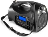 | Product colour | Black | | Playback options | BT streaming, USB, SD, FM radio | | Speaker type | Active (amplified) | | Output power: Max | 130W | | Output power | 65W | | Battery | 12V - 2.2Ah | | Frequency response | 50Hz - 16.000Hz | | THD | <0.1% | | Diameter woofer | 6.5" | | Magnet type | Ferrite | | Input connections | 3.5mm Jack, 6.3mm Jack, SD, USB | | Output connections | 3.5mm Jack, RCA | | Frequency handheld microphone(s) | 863 – 865 MHz | | Frequency headset (bodypack) | 863 – 865 MHz | | Power supply | 100-240VAC 50/60Hz | | Dimensions (L x W x H) | 320 x 180 x 215 mm | | Weight (kg) | 2,40 | | Included accessories | Handheld microphone (wireless), Headset microphone (wireless), Remote control (wireless) | pdf
