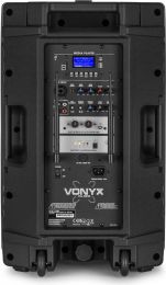 The Vonyx VSA serie is a serie high-quality professional 12” and 15” portable audio systems. The built-in amplifier unit is equipped with a BT receiver that allows streaming of all your favourite music from a smartphone or tablet and a USB port/SD slot for MP3 playback. In order to always be clear what is currently being played, these audio systems have a clear graphic display for displaying ID3 tags. Thanks to the built-in rechargeable battery, these systems are perfect for applications such as PA and street performances. The VSA systems also includes 2x UHF microphones for complete freedom.