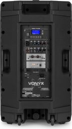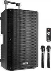 The Vonyx VSA serie is a serie high-quality professional 12” and 15” portable audio systems. The built-in amplifier unit is equipped with a BT receiver that allows streaming of all your favourite music from a smartphone or tablet and a USB port/SD slot for MP3 playback. In order to always be clear what is currently being played, these audio systems have a clear graphic display for displaying ID3 tags. Thanks to the built-in rechargeable battery, these systems are perfect for applications such as PA and street performances. The VSA systems also includes 2x UHF microphones for complete freedom.