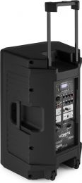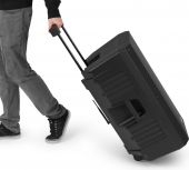 The rear panel of these systems offers plenty of connectivity, versatility and functionality. It includes a microphone input channel with a 3-pin XLR combo input, an Aux-line input, controls for tone adjustment, a Mp3 control unit and a battery indication section where you can easily check the status of the battery. It also offers both a Line In and Line out using an RCA jack. Here you can connect audio units with line-level output such as a mixer or other external device. Finally, there is a dedicated section to control two channels of UHF wireless microphones independently. Everything is enclosed into a single heavy duty enclosure, with roller wheels and a pull-up handle to assist with transport.