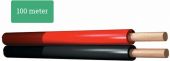 Standard universal 2-core stranded power cable for many applications. Stranded copper conductors in red and black PVC outer sheath. Supplied on reels of 100m. | Product colour | Black, Red | | CSA | 2.5mm² | | Conductor | 77 x 0.20mm | | Sheath | Black, Red | | Outer diameter | 4 x 8mm | | Weight (kg) | 4,30 |   |