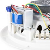 | Output power: RMS | 30W | | Diameter tweeter | 3/4" | | Diameter woofer | 6.5" | | Tweeter type | Dome | | Magnet type | Ferrite | | Impedance | 100V, 8 Ohm | | Tappings power (100V) | 3.75W, 7.5W, 15W, 30W | | Frequency response | 45Hz - 20.000Hz | | SPL @ 1W/1m | 89dB | | SPL max | 109dB | | Mounting depth | 80mm | | Mounting diameter | 200mm | | Dimensions (L x W x H) | 230ø x 85mm | | Weight | 1,30 | pdf