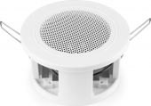 The CSBA3L is a ultra-compact low impedance speaker, designed to fit in almost any location especially where space is limited. It only needs a hole 85 mm in diameter for its recessed installation, with fast anchorage to the ceiling by means of an automatic spring mechanism. The CSBA3L is suitable for a wide variety of public address, background audio and sound reinforcement applications and has a 120° conical coverage pattern to provide excellent clarity and intelligibility. - Ultra-compact ceiling speaker