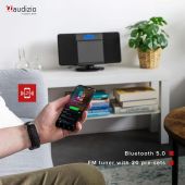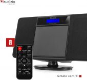 |  | Det Nimes Stereo HiFi-systemet er en kompakt og stilig enhet med utallige avspillingsmuligheter - enten du er ute etter musikk fra dine favoritt-CDer, MP3-album eller de siste nyhetene fra lokale FM-radiostasjoner. Den slanke CD-spilleren er integrert i den vertikalt stående eller hengende frontpanelet, noe som gjør hele systemet kun 10 cm dypt. Stereoanlegget gjenkjenner MP3-filer uten problemer og spiller dem i god kvalitet. For å tilpasse lydkvaliteten til din individuelle smak, tilbyr Audizio en ekstra X-Bass-funksjon for å fremheve bassen og en equalizer-funksjon med standardinnstillinger for Klassisk, Pop, Jazz og Rock. AUX-inngangen kan enkelt kobles til en ekstern enhet, som for eksempel hjemme-PCen, smarttelefonen, nettbrettet eller bærbar PC. Styr alle funksjonene uten å reise deg fra din favorittstol med den medfølgende fjernkontrollen. - Stilig Stereo HiFi-system med USB og CD-spiller