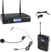 |  | Vonyx WM6 trådløs mikrofonserie leverer klar og støyfri trådløs overføring og utmerket lydgjengivelse. Enkel oppsett og installasjon gjør det mulig å overføre klar lyd umiddelbart. Disse systemene opererer i 863-865MHz UHF-båndet og har 16 kanaler, signal-til-støy-forhold og er utstyrt med en lys og tydelig skjerm. Disse er flotte mikrofonenheter for fest, tale, karaoke, sportsundervisning, møter og så videre. - Mottaker med 1 kroppspakke og headsetmikrofon