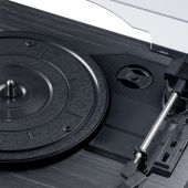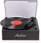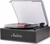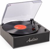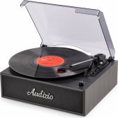 Bring back the timeless charm of vinyl with the Audizio Reno, a stylish record player designed for true music lovers. Inspired by vintage aesthetics and modern simplicity, the Reno turntable features a warm wood finish, built-in stereo speakers, and a protective dust cover, all wrapped in a nostalgic retro design. Whether you're spinning old classics or discovering new favourites, the Reno is perfect for casual listening and home decor alike. With the built-in BT receiver, digital music can also be streamed wirelessly from a smartphone, tablet PC or other BT compatible device and can be listened to the stereo speakers.